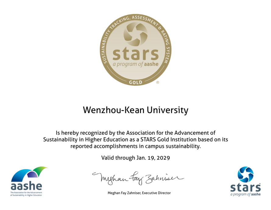 - Wenzhou-Kean University Spearheading Sustainability in Higher Education in Asia and in China, Awarded the AASHE STARS Gold-Certified in Sustainability