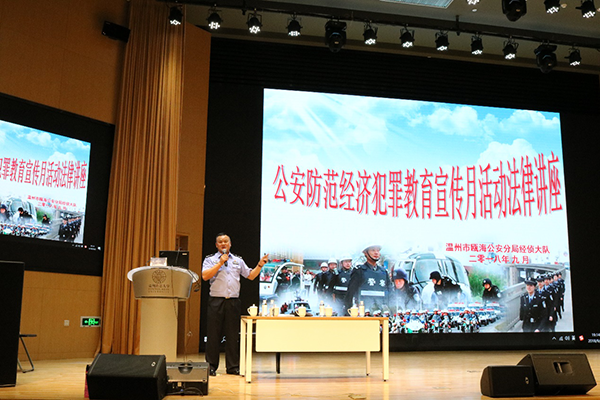 根据往年高校电信诈骗案件发案率高、受骗群体较广的特点, 我校举行了2场“防范经济犯罪教育”讲座。主讲人瓯海区公安分局经侦大队教导员金定忠先是对今年以来高校中高发警情进行了通报,并讲解剖析案例的特点、犯罪嫌疑人作案手法、被害人的防范漏洞等,尤其是结合具体案例针对校园贷这一变相高利贷及电信诈骗案进行了详细的解说,引导在校学生洁身自爱、识破校园贷、电信诈骗的骗局,围绕相关案件类型传授了相关有效措施和对策。