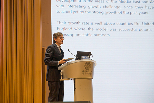 郑晓东校长代表温肯欢迎了意大利设计师团以及社会各界嘉宾的到来。他说,作为一所中外合作大学,温肯一直坚持国际化办学,此次论坛是学校与外界在学术合作交流国际化方面的一个重要内容。“温肯的规划和建设融校园、家园、公园为一体,以学习型、宜居性、生态型、智慧型的弹性环境塑造面向未来的大学校园,也可以说是本次论坛主题‘用创意点亮温州城市未来’的一个有趣的案例。”他希望,借此次论坛的机会,听取中意两国设计专家对温州城市建设,对温州肯恩大学的校园建设提出的宝贵意见,并期待意中建筑协会日后能与学校开展各方面的合作与交流。