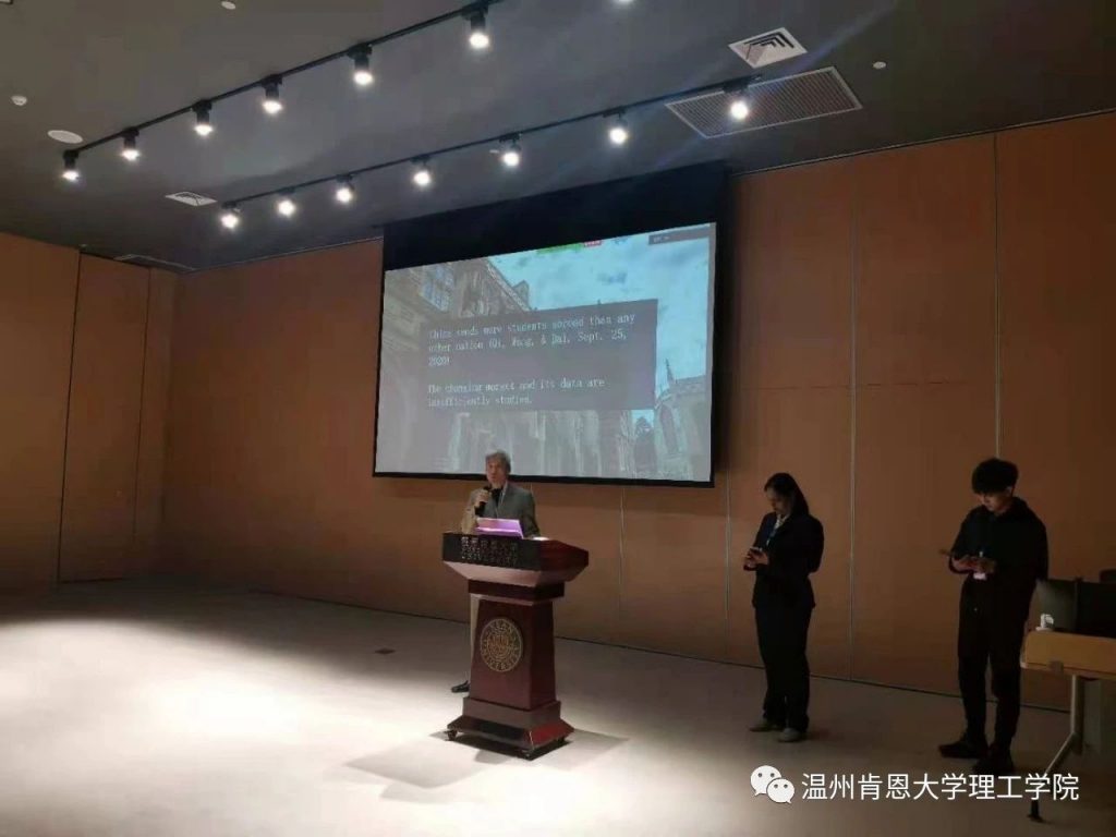 这次大会中有来自温州肯恩大学的学生们展示他们在数据科学方面的研究成果,Larry Brown博士通过自己曾经的亲身经历鼓励学生们敢于发表自己的想法,展示自己的成果。